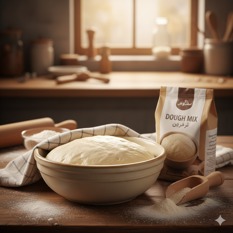 روش استفاده: ترکیب با آب گرم و روغن، سپس استراحت دادن به خمیر و پخت در فر