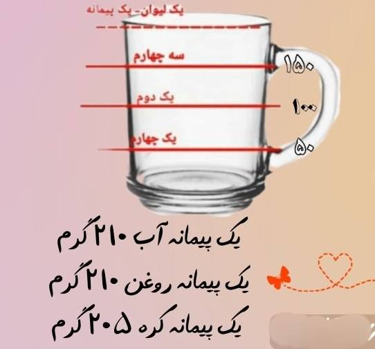 ولی اندازه ای که الان براتون میذارم با لیوان دسته دار فرانسوی هست👇